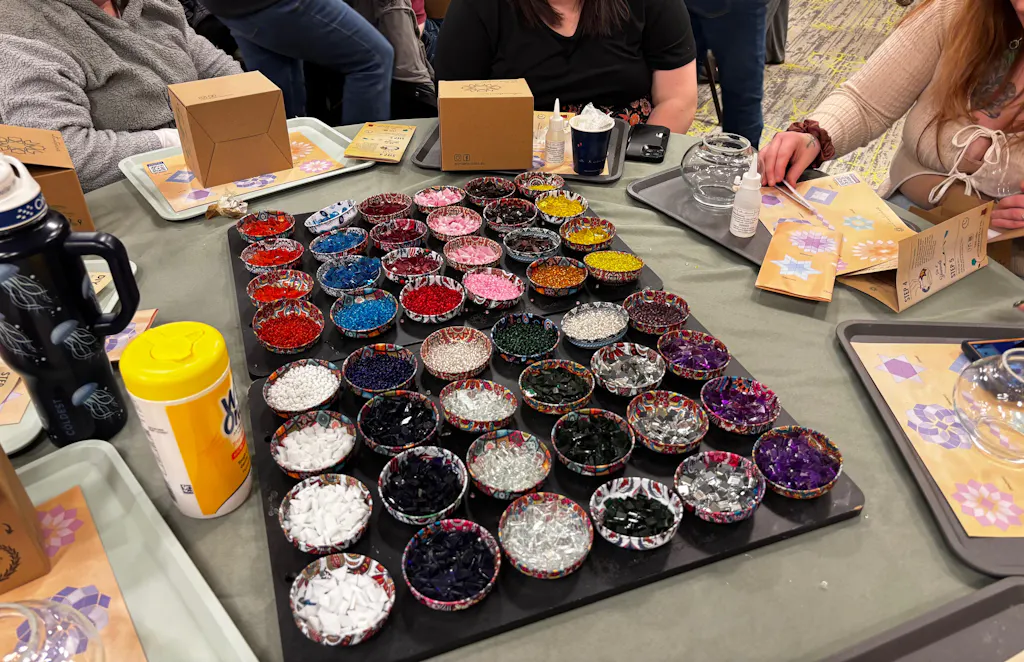I went to the workshop and loved the variation of colors. In the workshop you can follow a pattern or create your own, they offer many different colors to choose from and the instructors are great, they provide instructions and answer all questions. I will do it again when they return to Windsor, CT.