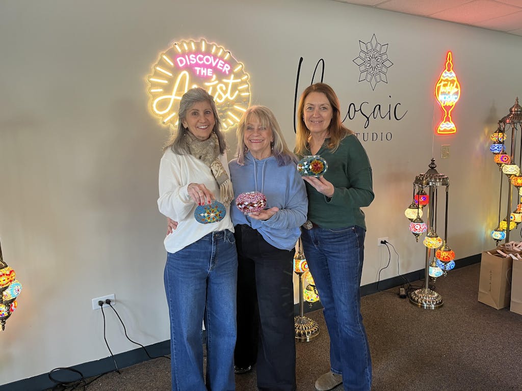 After finishing the workshop, take your artwork home and apply grout to lock in your design. The final step transforms your mosaic into a work of art.