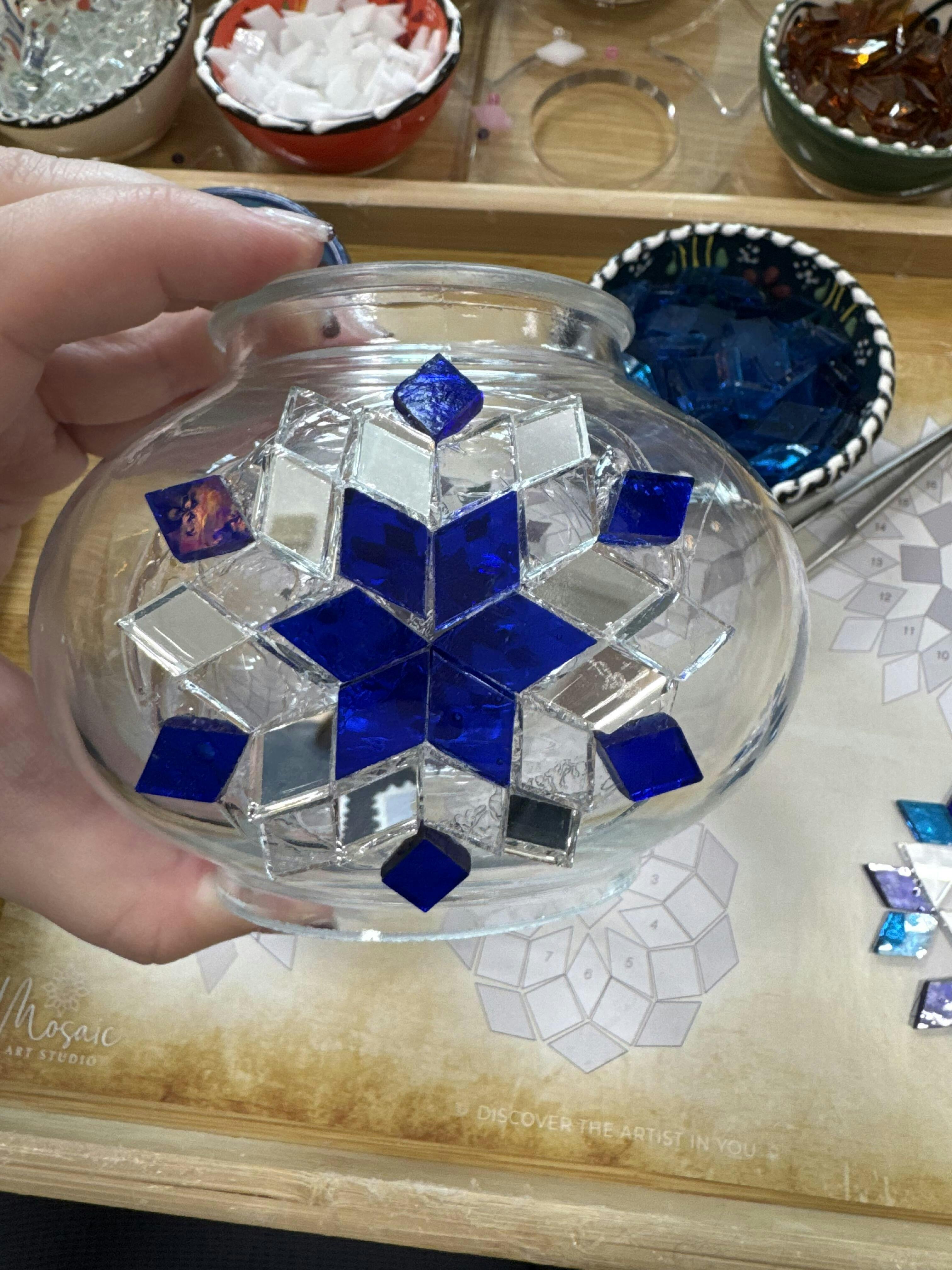 Now, sit back and enjoy the mosaic masterpiece you've created while sipping Turkish Tea and snacking on sweet Delights.