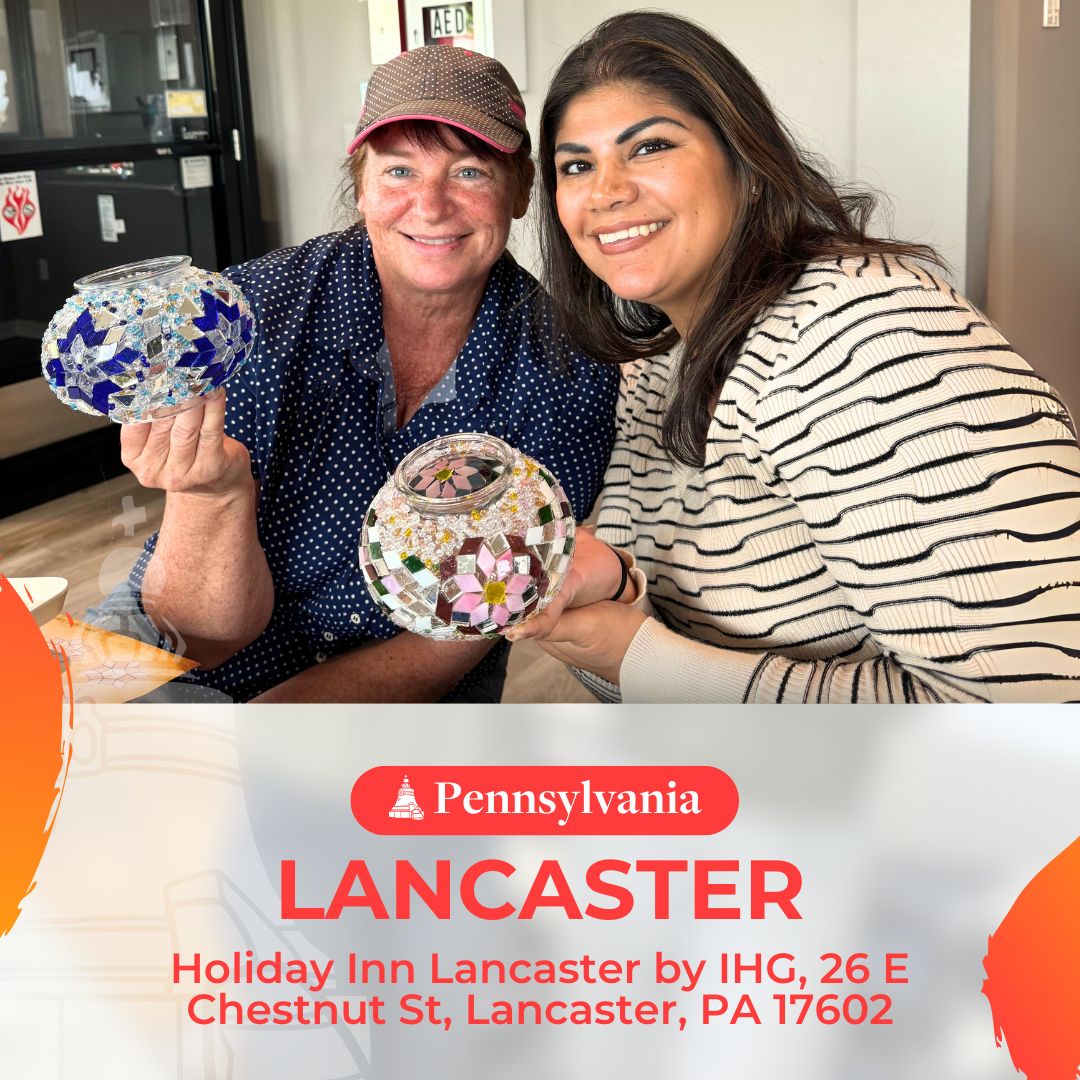 The mosaic art class was a great way to make an easy craft while visiting with friends or family. The lamps are beautiful despite my lack of giftedness in this area. I enjoyed the time with my mom and sister while doing something creative. I highly recommend it!