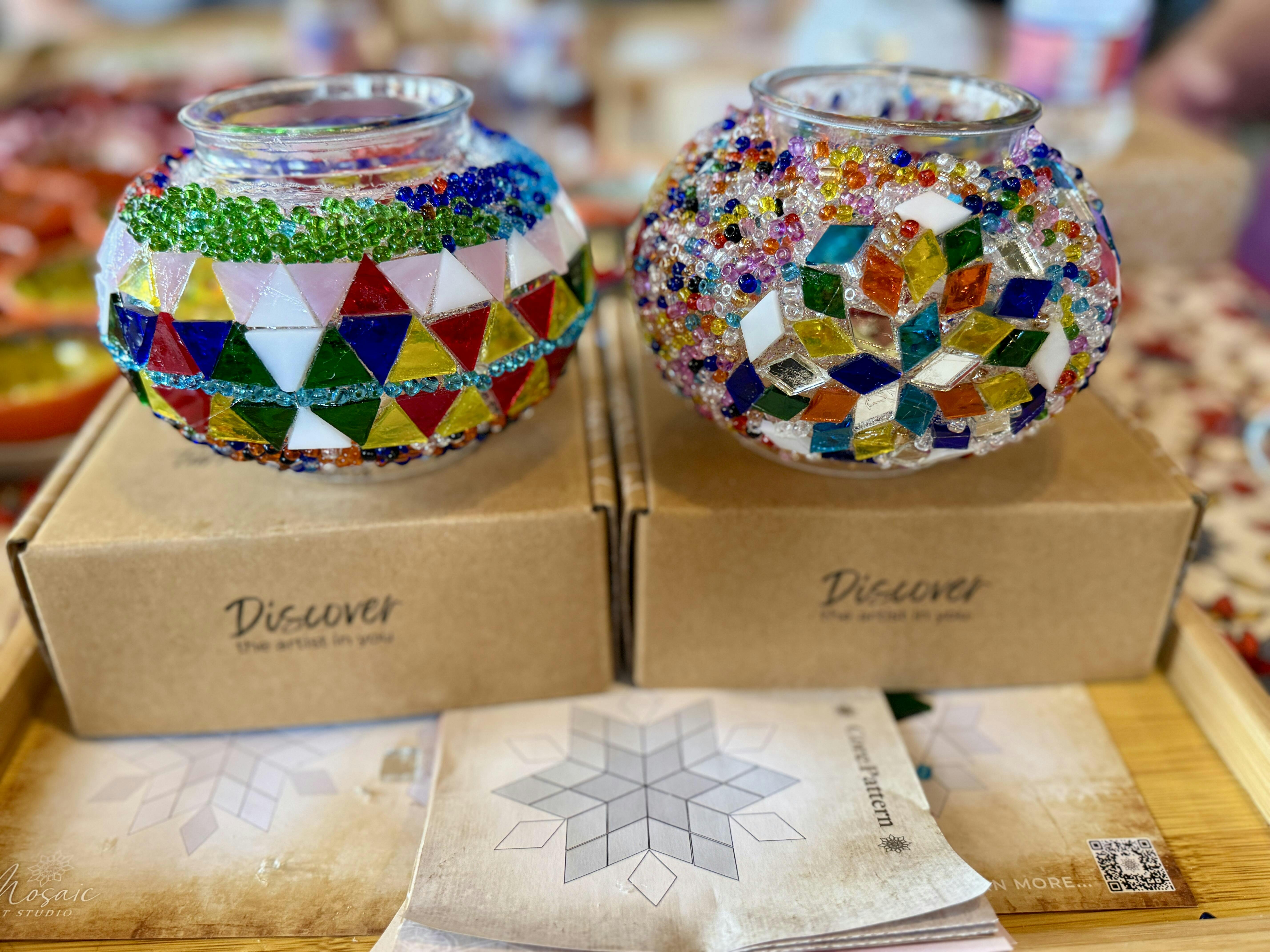 The mosaic art class was a great way to make an easy craft while visiting with friends or family. The lamps are beautiful despite my lack of giftedness in this area. I enjoyed the time with my mom and sister while doing something creative. I highly recommend it!