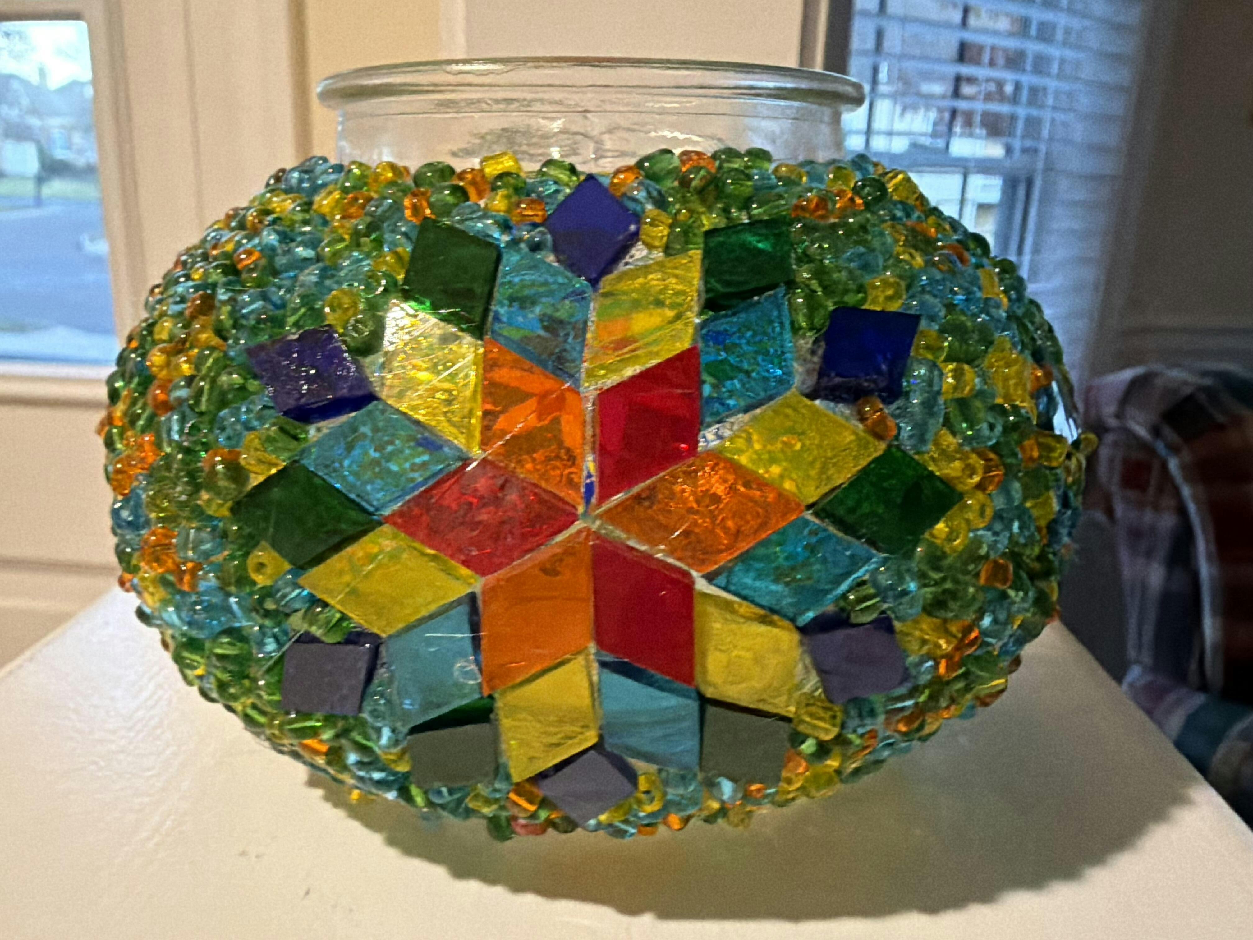 We use special adhesive and beads to strengthen your mosaic lamp and add a signature shimmering effect.