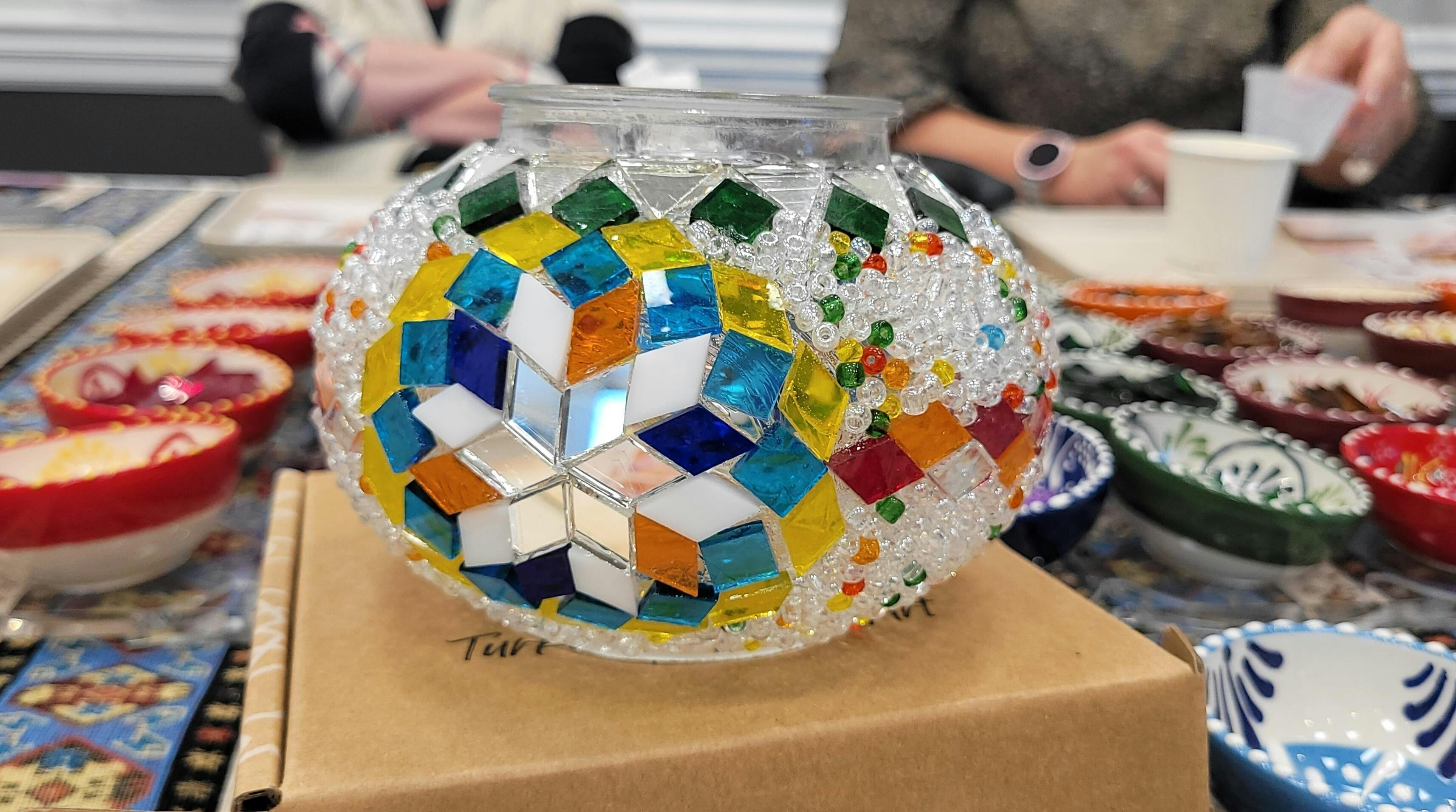 Feel the creative vibe in our workshop with handcrafted lamps and mosaics, guided by expert instructors.