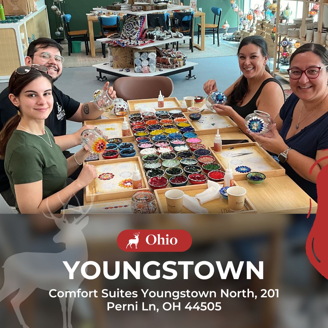 Feel the creative vibe in our workshop with handcrafted lamps and mosaics, guided by expert instructors.