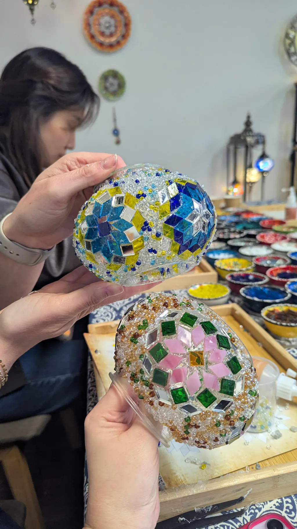 Feel the creative vibe in our workshop with handcrafted lamps and mosaics, guided by expert instructors.