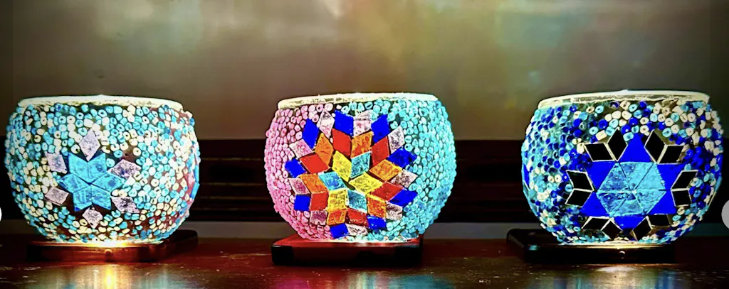 Feel the creative vibe in our workshop with handcrafted lamps and mosaics, guided by expert instructors.