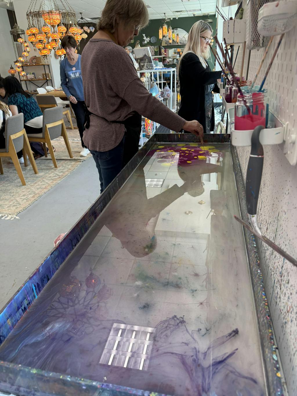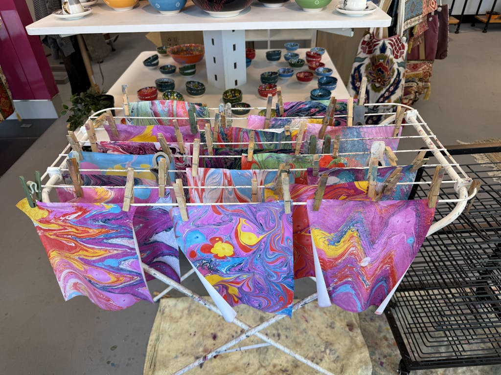 We recommend wearing comfortable, casual clothing. While we provide aprons, marbling can be a bit messy, so it’s best to come prepared for a fun, hands-on experience!
